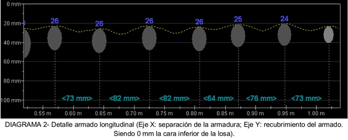 – Caracterización del armado mediante escáner de hormigón tipo pachómetro Profometer 650 L, de Proceq (https://www.proceq.com/es/) y mediante ejecución de rozas con objeto de ajustar los datos  obtenidos por medio del escaneado.